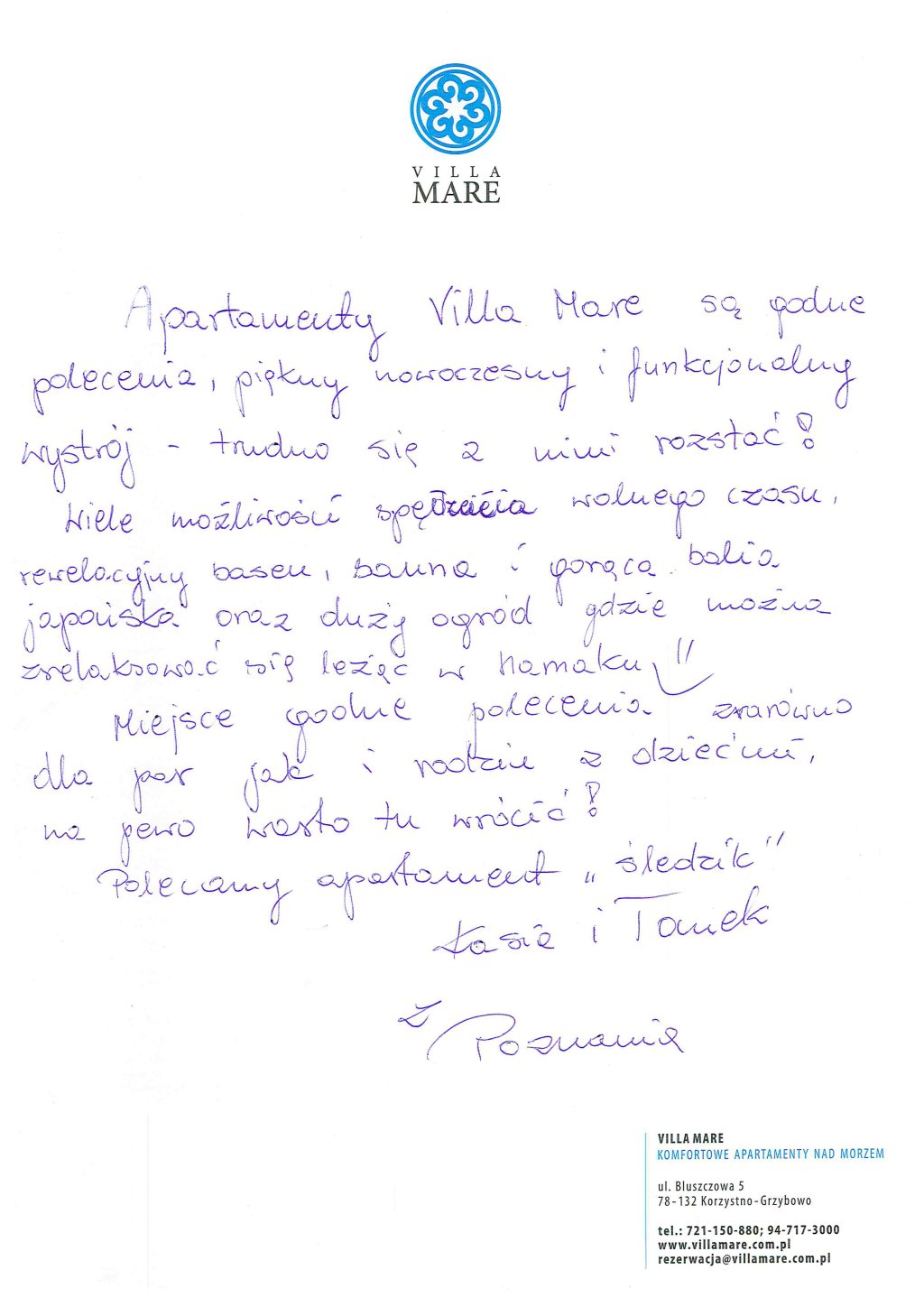 apartamenty-kolobrzeg-grzybowo-villamare-opinie-booking-awards